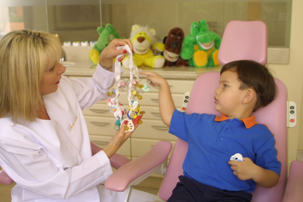 A troca do bico com o Odontopediatra, que lhe mostra uma coleção de bicos que ganhou de outras crianças é um estímulo para que faça o mesmo.